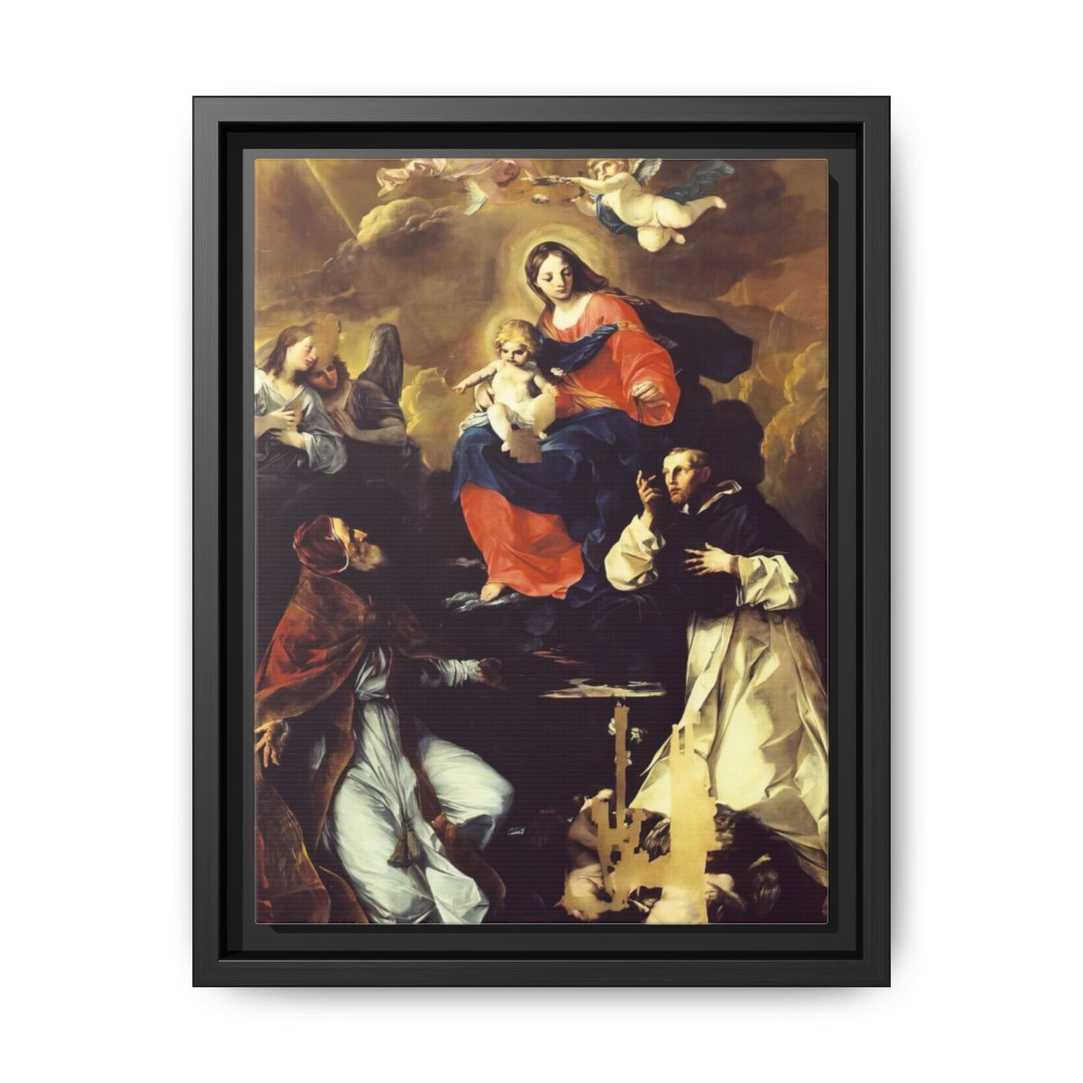 Felice Torelli’s 1700 oil painting "Virgin and Child with Angels and Saints" is a Baroque masterpiece depicting Marian devotion with vivid religious symbolism.