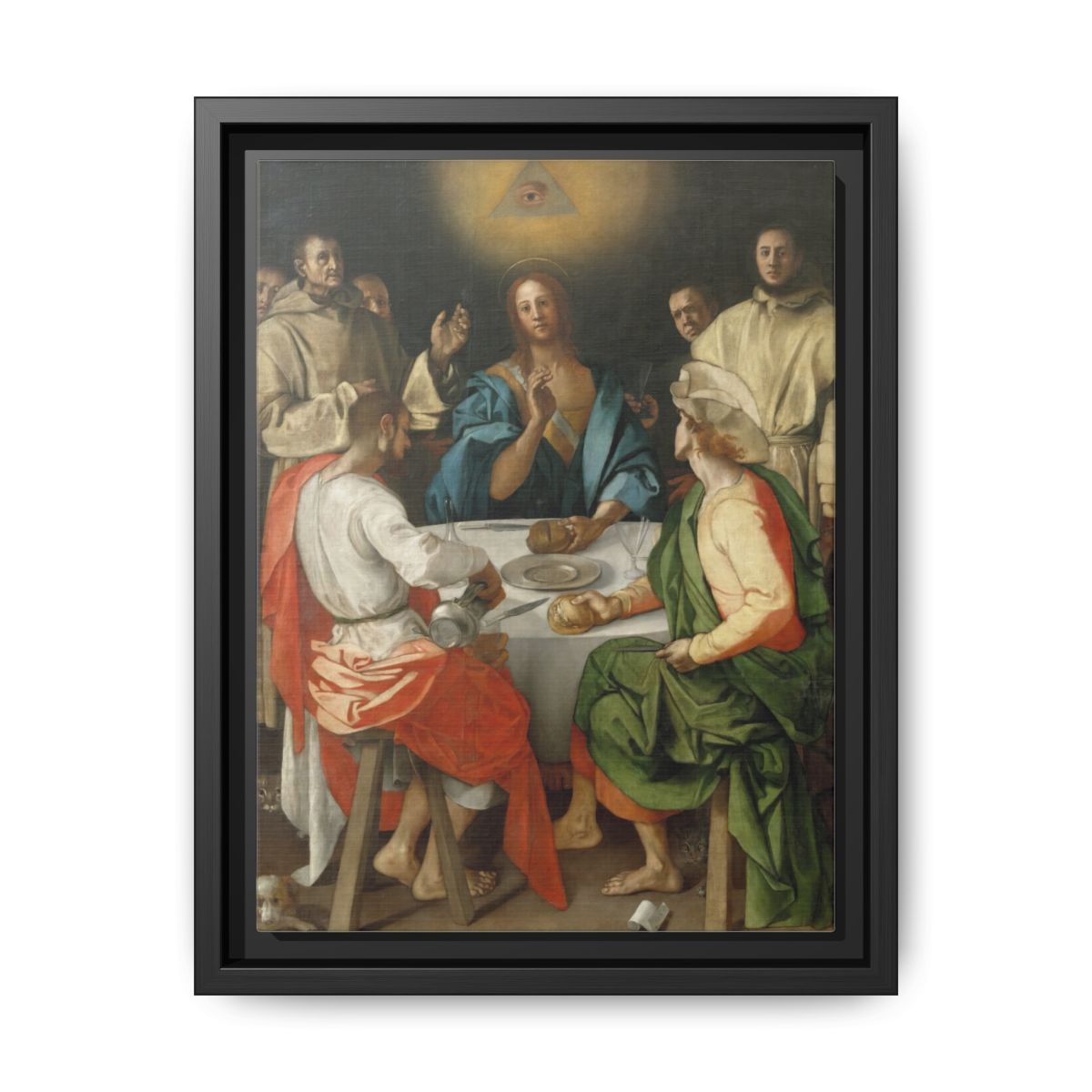 Pontormo’s 1525 “Supper at Emmaus” is a vibrant Mannerist oil painting on wood, depicting Christ’s resurrection appearance, blending drama with rich religious symbolism.